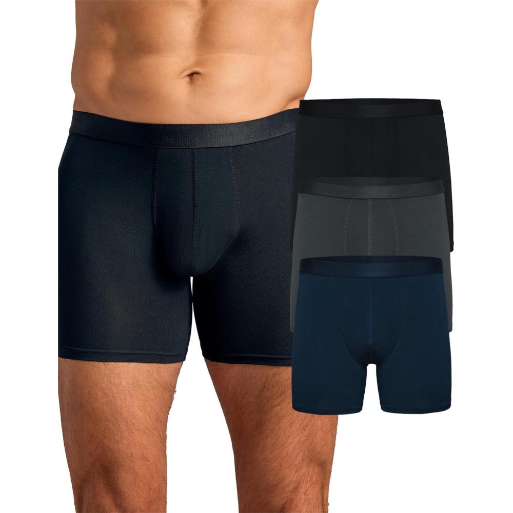 True Classic Mens Underwear – Mens Boxer Briefs Pack, 6” & 4” Novelty Underwear for Men, Micromodal Packs and Singles(Black/Carbon/Navy (3-pack))